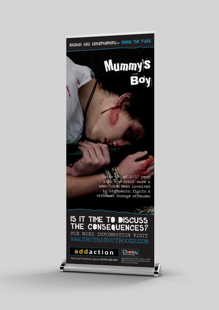 The finished artwork delivered a striking and memorable message that quickly conveyed the point to the target audiences. The client reported significant growth in enquiries for information and referrals to the client’s alcohol abuse support partners.