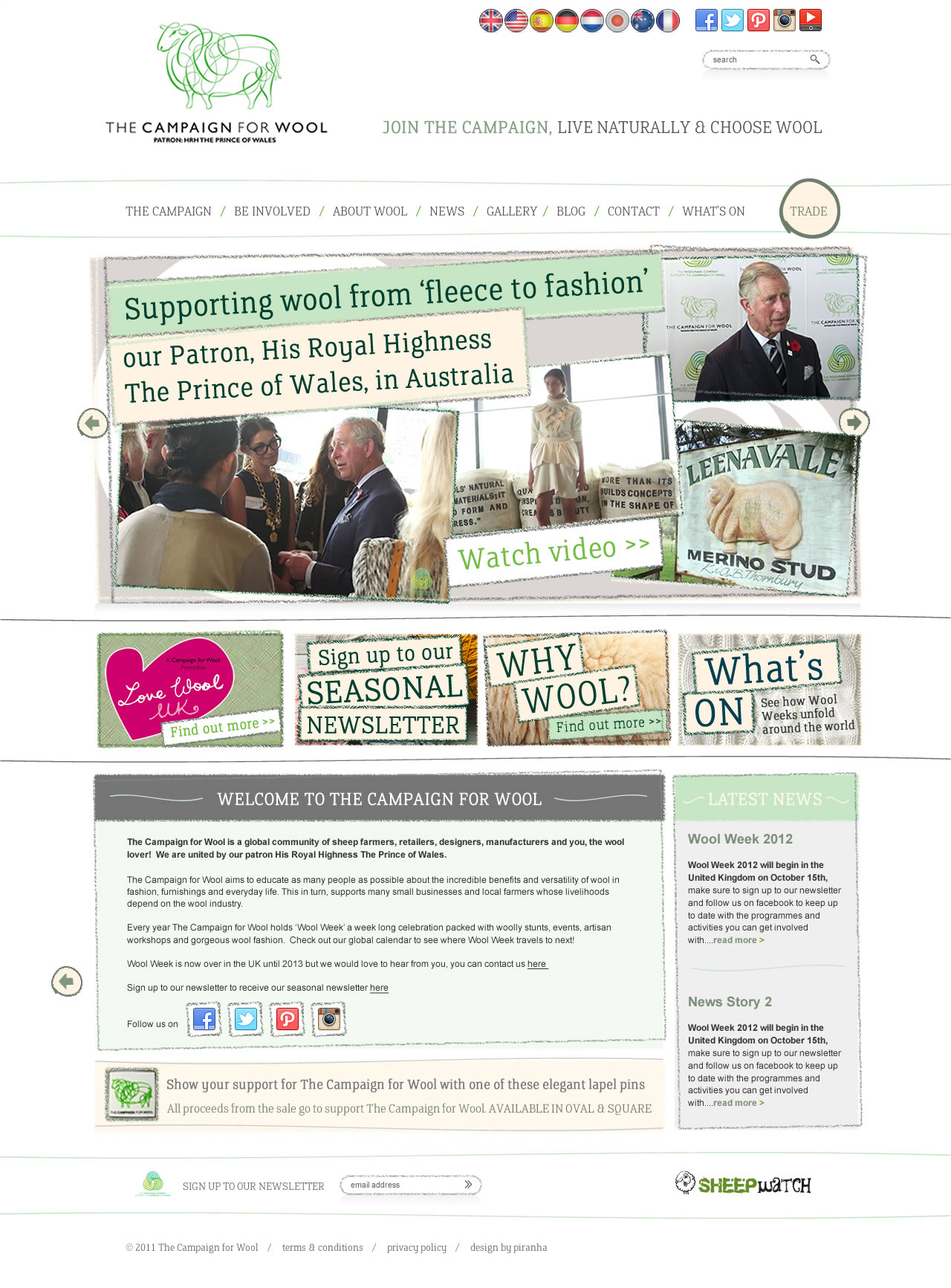 Piranha’s strategy accommodated the diverse uses and audiences of the wool market, as well as potential supporters from other backgrounds. The Piranha team created a brand-new website as a focal point for the campaign and to help boost their online presence. We also introduced international websites to promote local issues and events for China, France, Germany, Japan, Korea, the Netherlands, New Zealand and the USA.