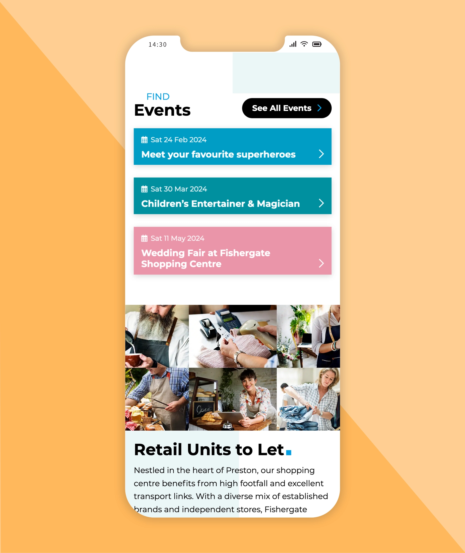 An enhanced mobile experience means that users are able to navigate the site easily, while out and about shopping. The team created a new, vibrant events feed, promoting the range or activities on offer, encouraging visitors and website engagement. Our user-interface designers optimised the user-experience, enabling users to quickly find the stores available and easily plan a visit.