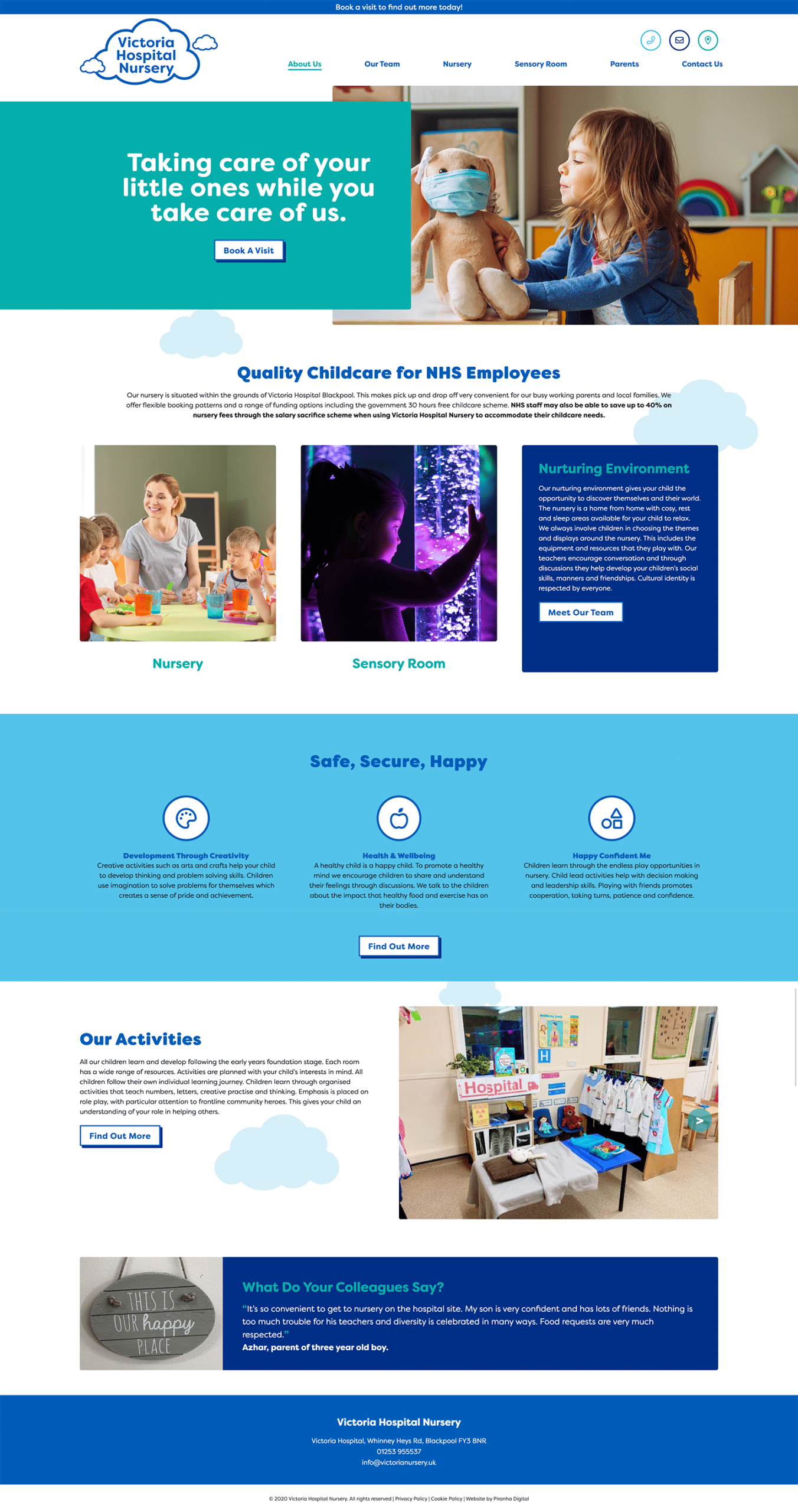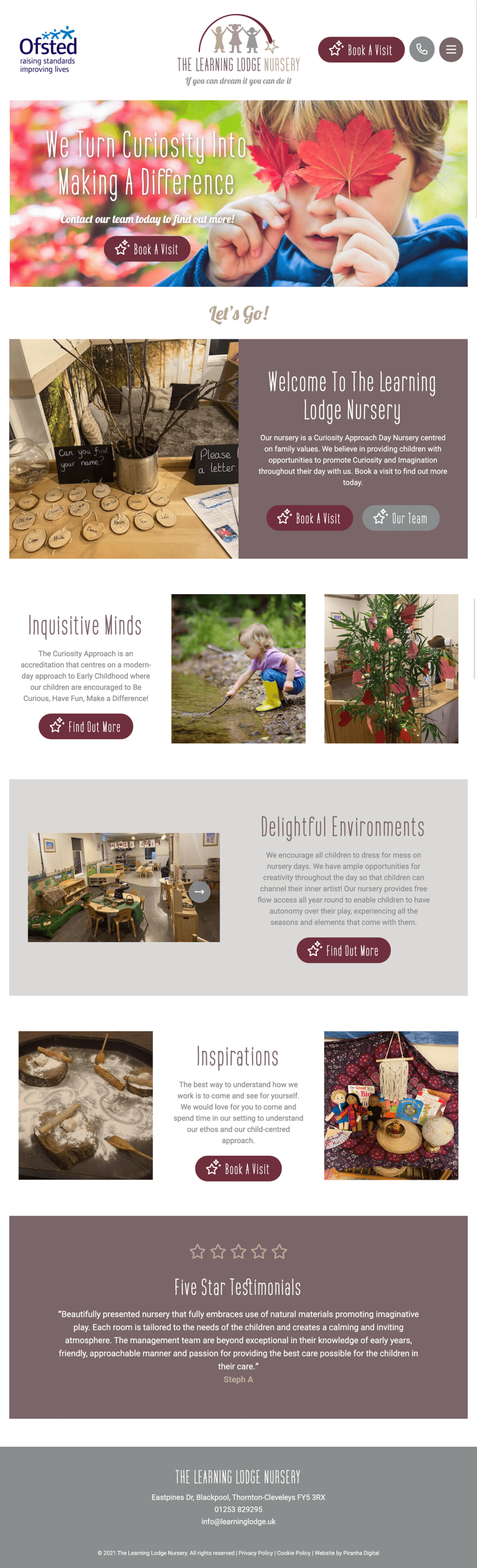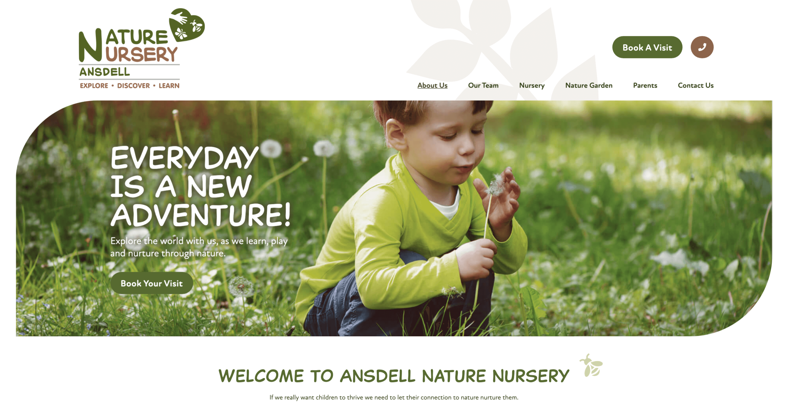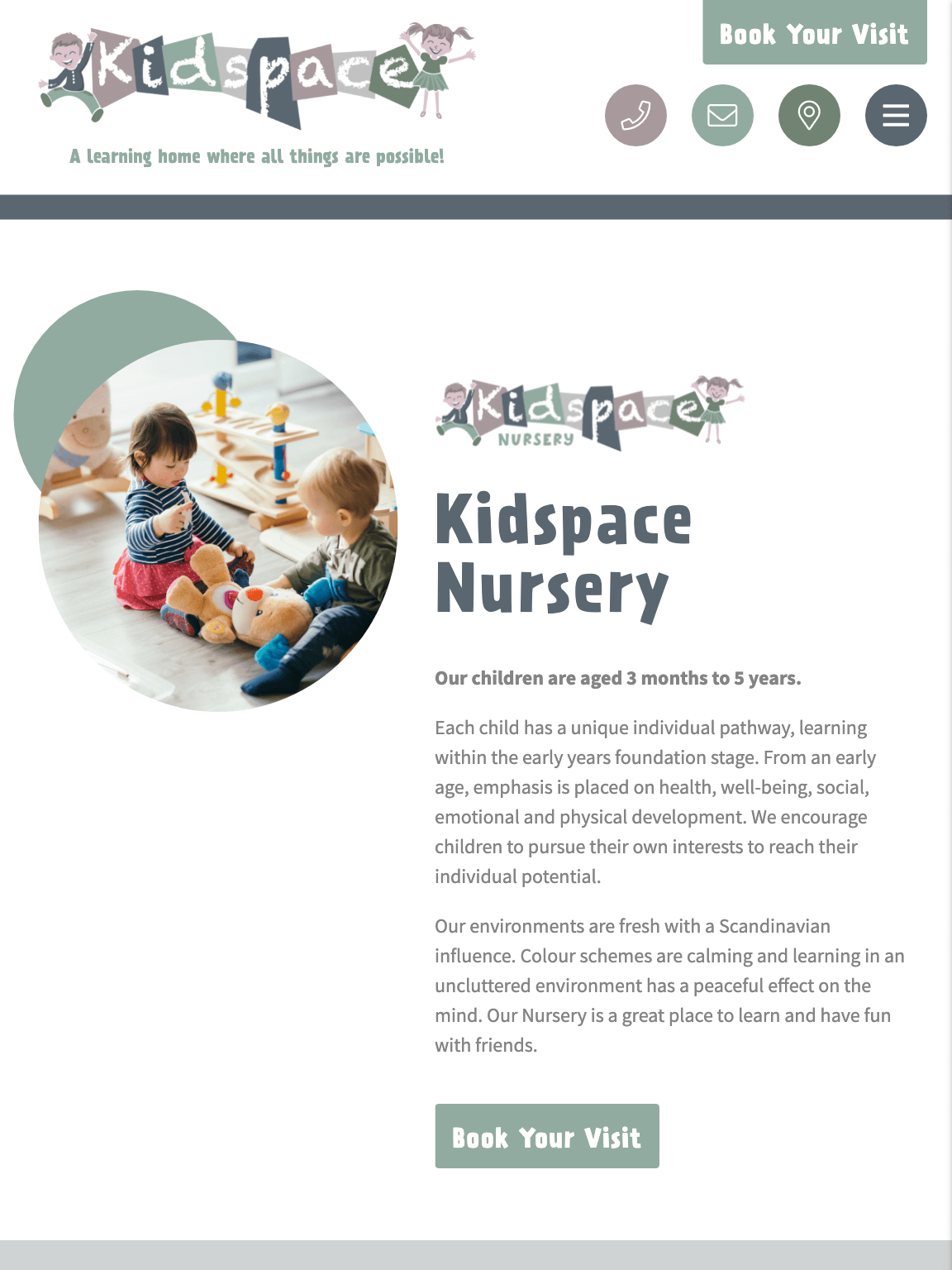 Once the brand identities had been agreed, Piranha began rolling out the new brands, creating a unique website for each nursery. Each website reflected the new visual identity and unique ethos of the nursery, incorporating fun and engaging graphic elements whilst still providing users with all the important information about the nursery they would require.