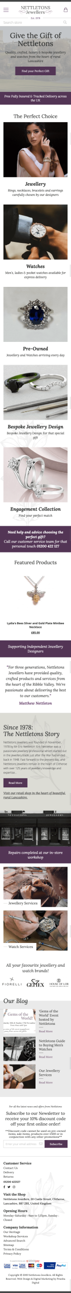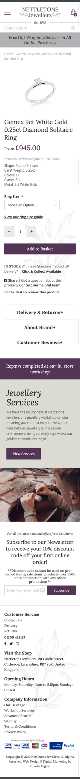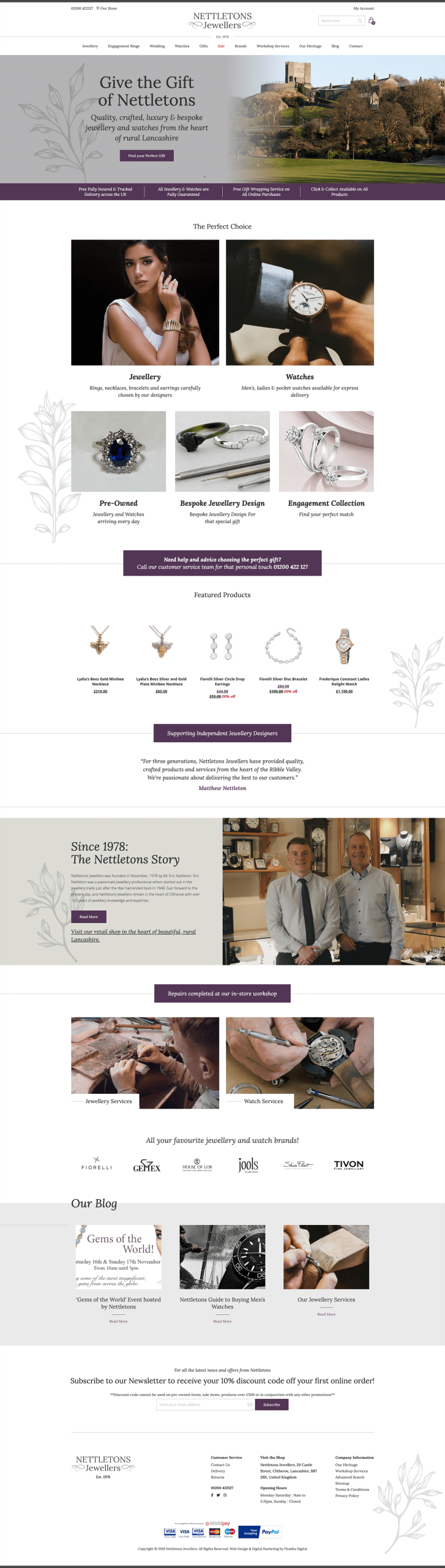 Based in Clitheroe, Lancashire, Nettletons is an independent family-run jewellers providing a wide range of jewellery products alongside expert repair, customisation, and maintenance services. Piranha was approached to design and build a new e-commerce website for the company, developed in the Magento 2 CMS.