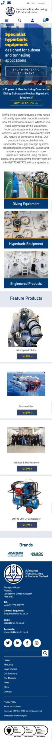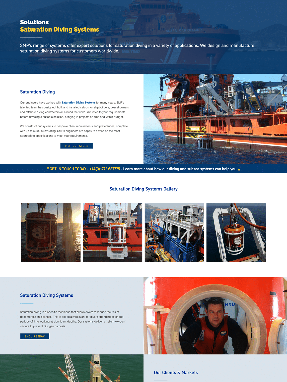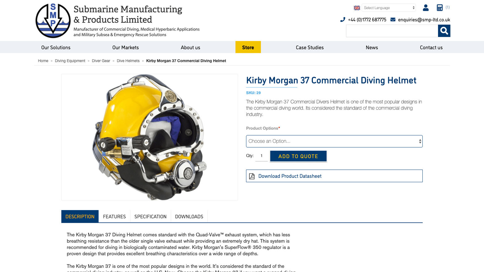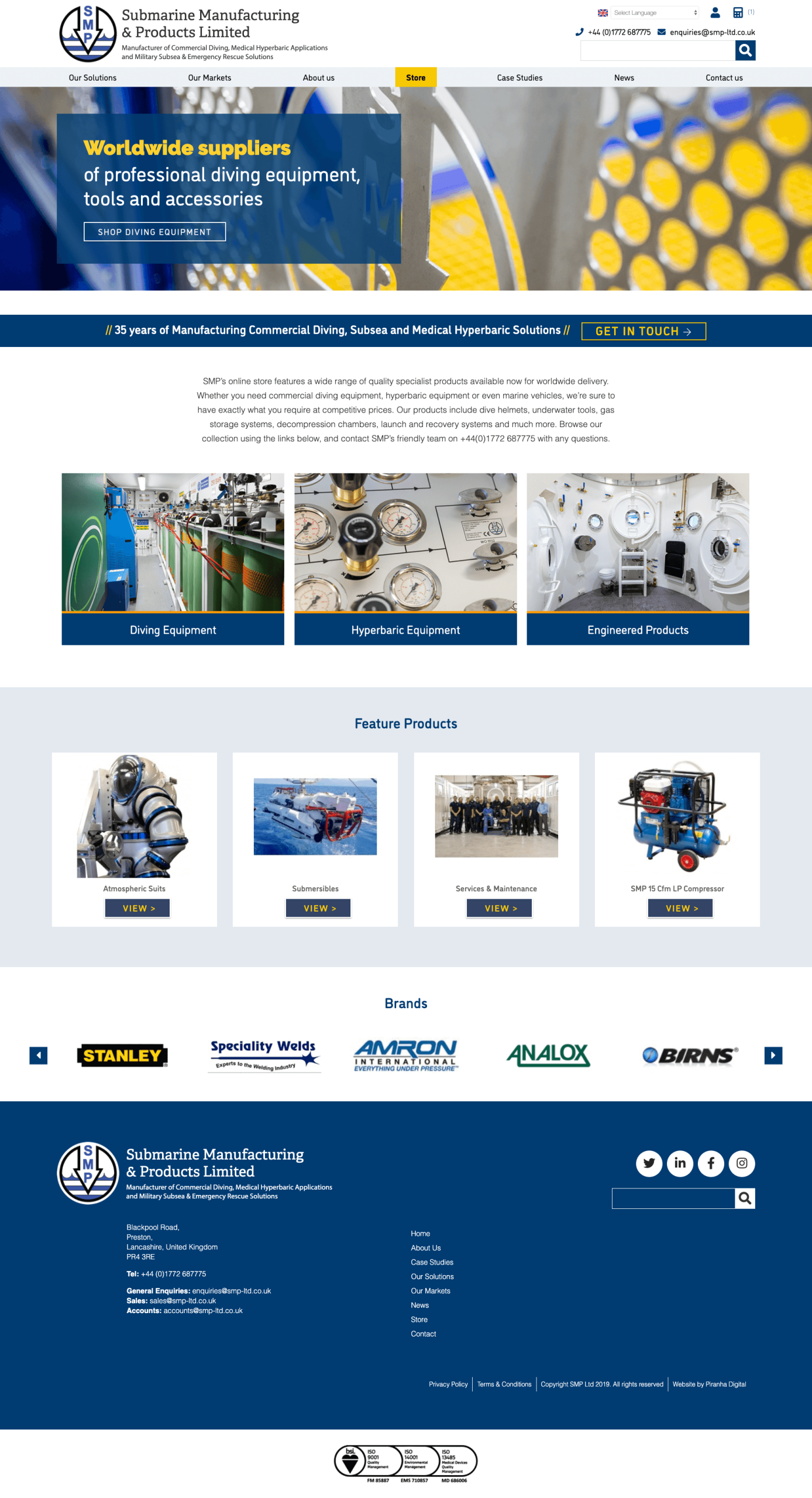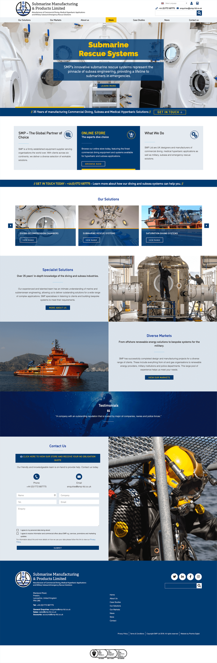 Submarine Manufacturing & Products Limited (SMP) design and manufacture commercial diving and hyperbaric equipment. They required a new website that would feature both a product catalogue and e-commerce functionality.