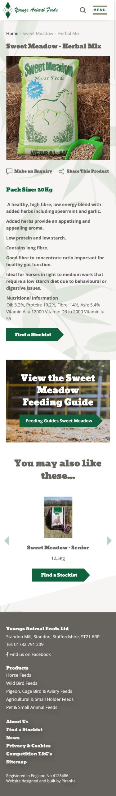 Young’s Animal Feeds is a wholesale distributor and retailer of equine products. Piranha developed a new modern and creative website for the company. The site included a full portfolio of products, along with a stockist finder to enable customers to easily purchase products shown on the website.
